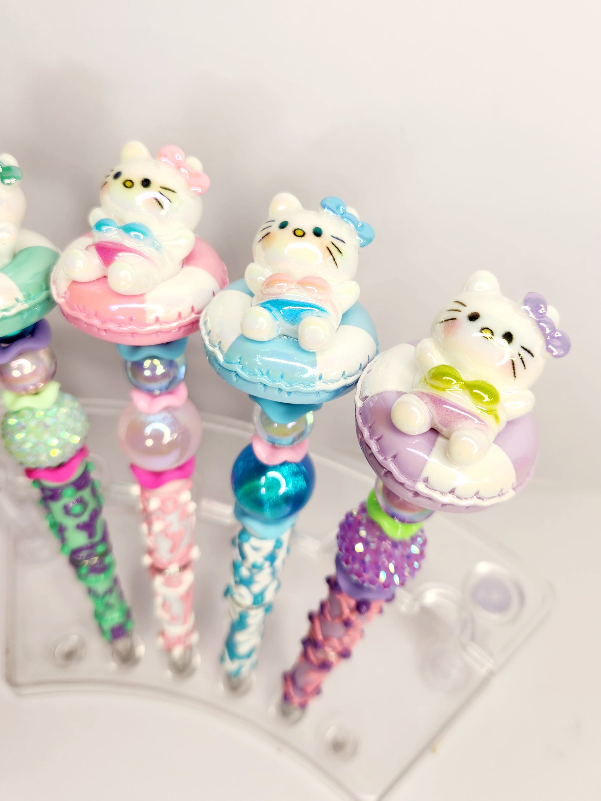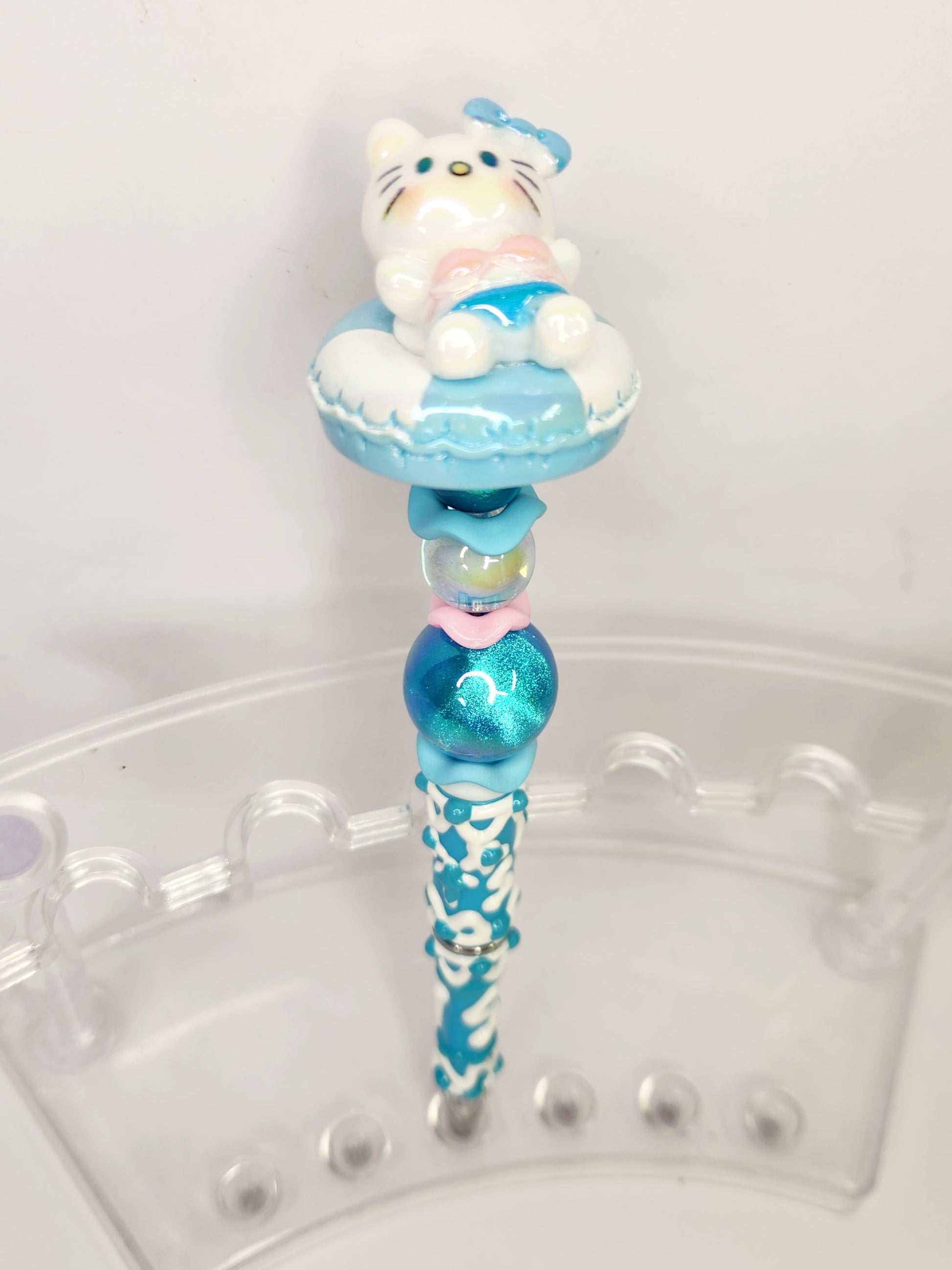 Introducing the Pool Party Kitty - the purrfect addition to your writing collection! This cute kitty sits atop a hand-painted pen, making it both unique and fun. Plus, all pens come with complimentary ink refills for endless writing enjoyment.